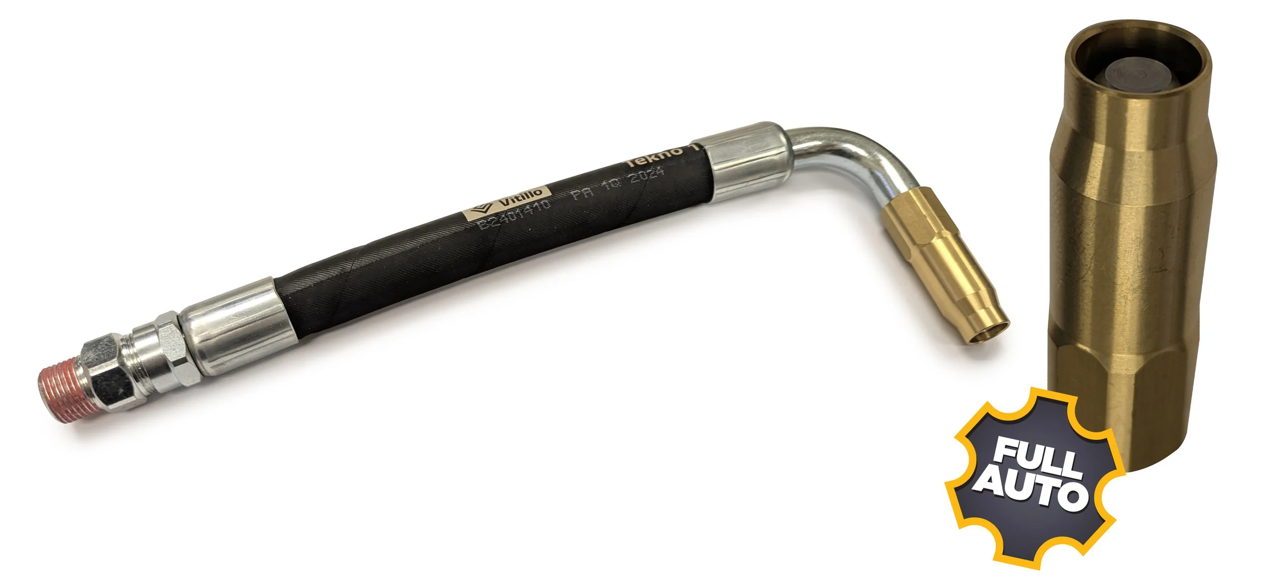 The full auto tip responses to pressure in the line, the tip is spring loaded internally and is activated open by pulling the trigger and shuts off when the trigger is released.