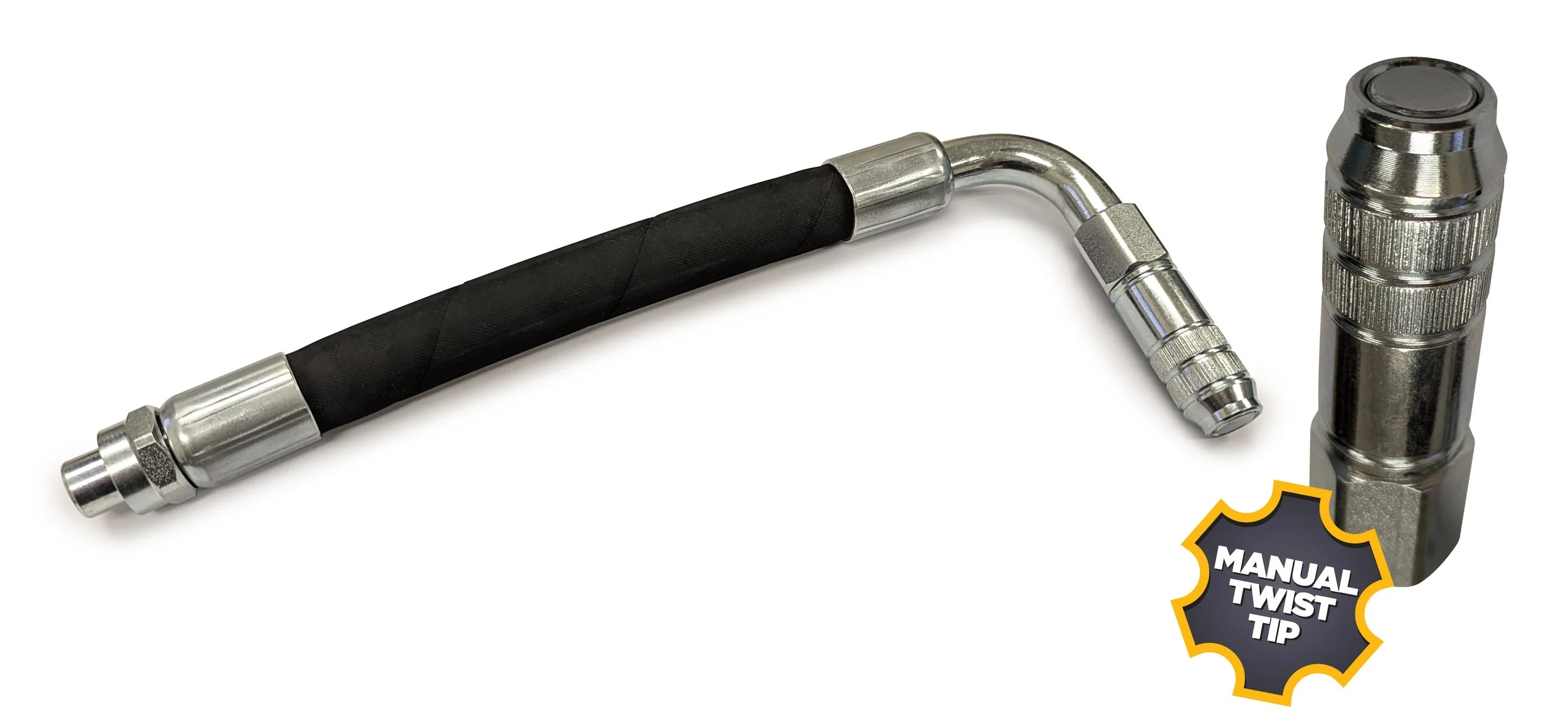 This is the bare bones tip, it will not operate unless you twist the tip open and it can confuse inexperienced users to think the gun isn’t working as it just won’t deliver oil. It will not close off to stop dripping unless you twist the tip back!